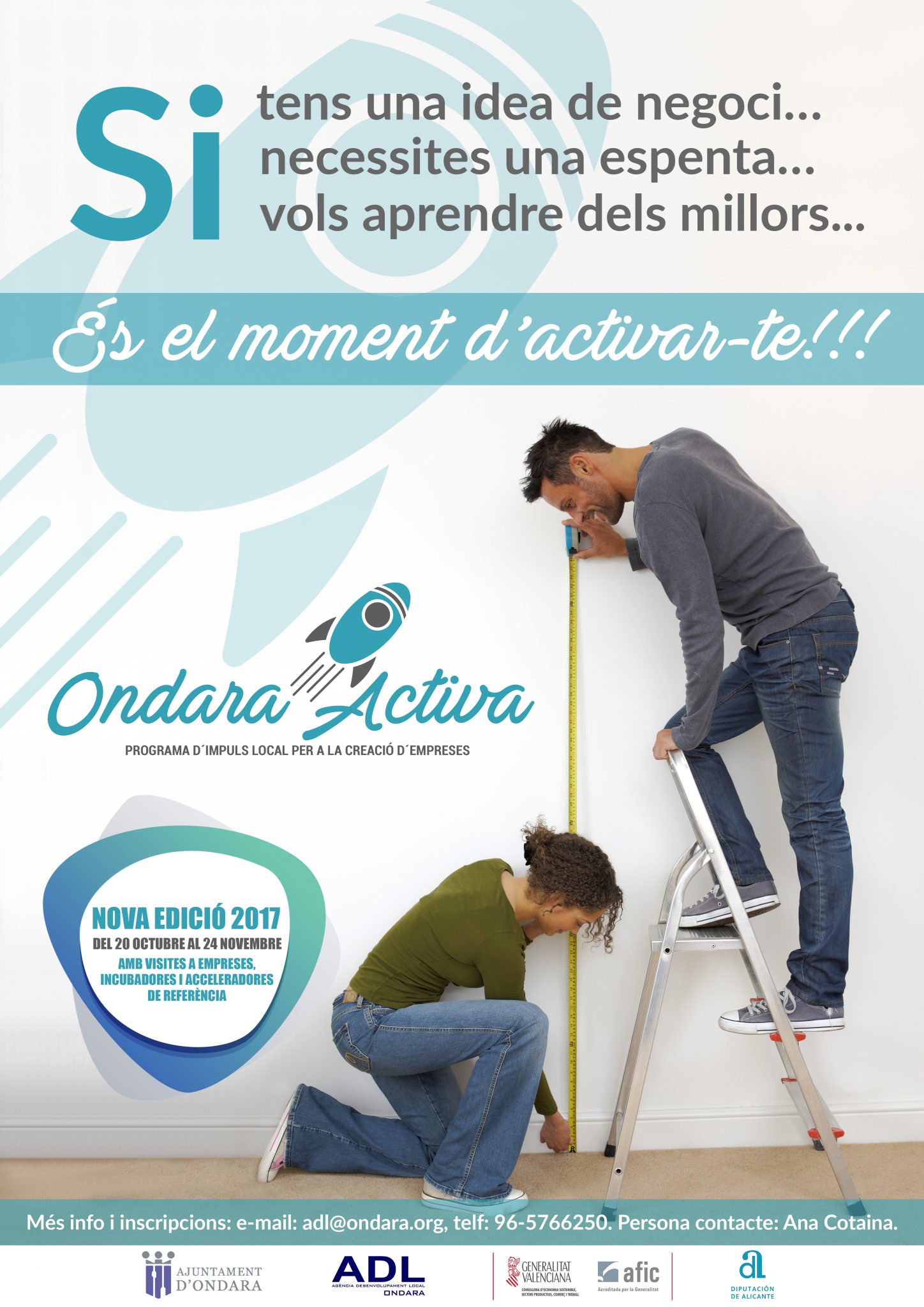 Más información y bases de la convocatoria: http://laveu.ondara.org/2017/09/06/ondara-llanca-la-segona-edicio-ondara-activa-de-suport-als-emprenedors-locals