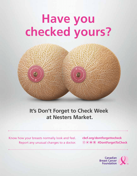 Nos ha encantado esta campaña de marketing de guerrilla de la cadena canadiense de supermercados Nesters Market. La empresa de distribución alimentaria cambió el look de sus melones para apoyar a la Fundación Canadiense de Cáncer de Mama.
