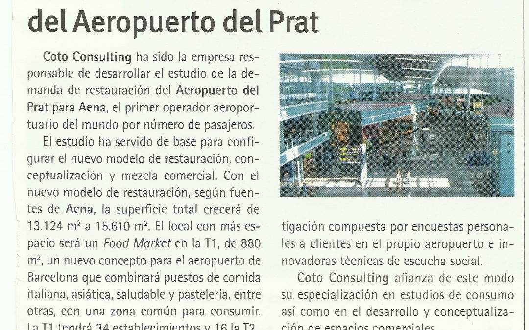 Coto Consultting ha sido al empresa responsable de desarrollar el estudio de la demanda de restauración del Aeropuerto del Prat para Aena,