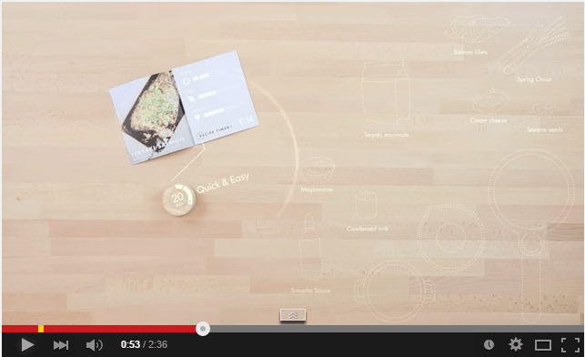 «A table for living» aparenta ser una mesa de cocina al uso pero debajo lleva una vitrocerámica de inducción y encima un proyector. La mesa permite identificar, desplazar y cocinar los alimentos.