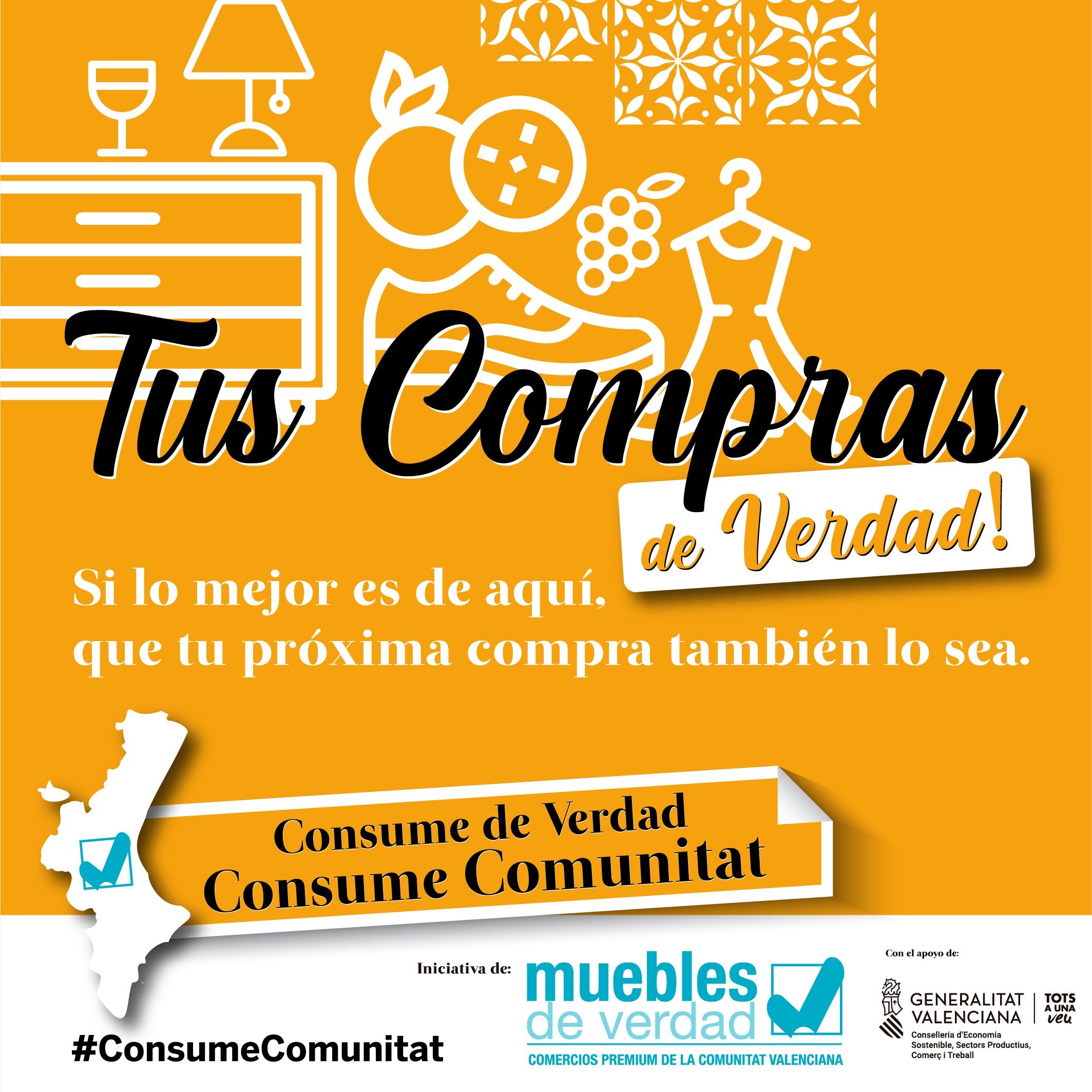 Por eso, desde Comerç Moble, Asociación para la Distribución y Comercio del Mueble de la Comunitat Valenciana, proponemos una campaña transversal que surja desde el sector del mueble, pero que aglutine a todos los sectores representativos de la Comunitat Valenciana (muebles, cerámica, cítricos, diseño, calzado, juguete, textil, turismo, vino, iluminación y moda) para movilizar las compras y el consumo. El hashtag utilizado en esta campaña será: #consumedeverdad #ConsumeComunitat.