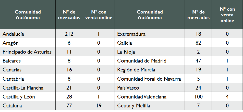 Mercados municipales con venta online por COMUNIDAD AUTÓNOMA: