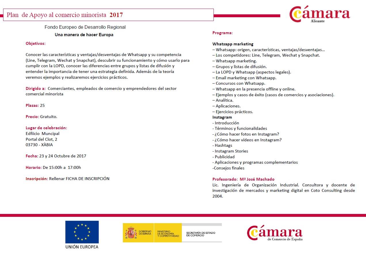 Este taller de formación para comercio se enmarca dentro de las actuaciones divulgativas sobre comercio electrónico del Plan de Apoyo al Comercio Minorista 2017 que organiza la Cámara de Alicante con la colaboración de Creama Xàbia.