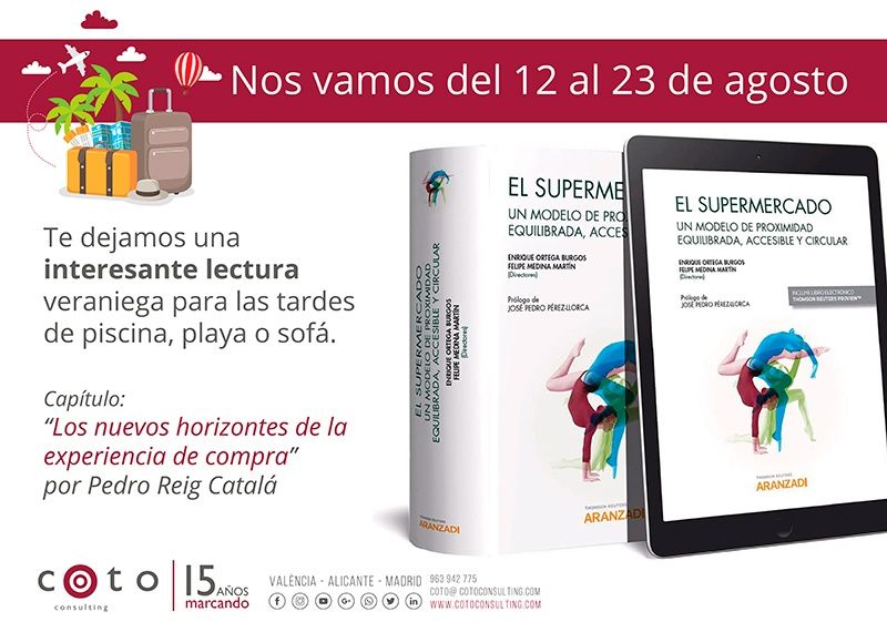 Nos vamos del 12 al 23 de agosto, pero te dejamos una interesante lectura veraniega para las tardes de piscina, playa o sofá: “Capítulo: Los nuevos horizontes de la experiencia de compra” del libro «EL SUPERMERCADO, un modelo de proximidad proximidad equilibrada, accesible y circular».