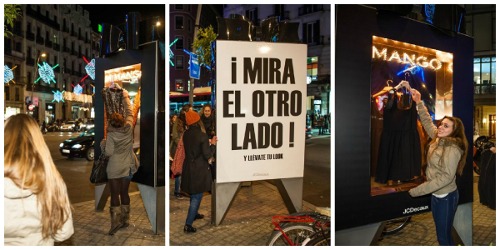 Mango, de la mano de JCDecaux Innovate, preparó un evento en el que la popular marca de ropa regaló sus prendas a todos aquellos que se acercaron a un soporte dispensador preparado para la ocasión en Carrer Pelai, junto a la Plaza de Catalunya en Barcelona.