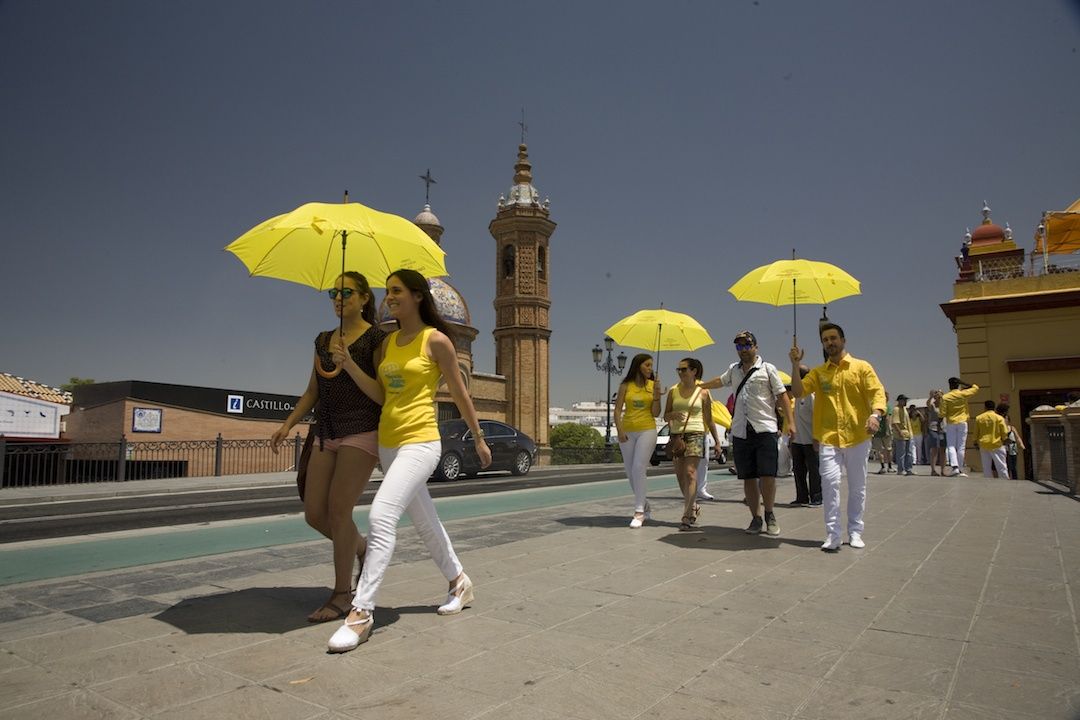 Sevilla, 3 de julio, 12 del mediodía, 39 grados. Cruzcampo Randler sorprende a los ciudadanos con una original campaña llamada «operación sombra». 100 azafatas/os ofrecieron paraguas para proporcionar sombra y que fuera «el día en que ningún sevillano se quedó sin sombra».