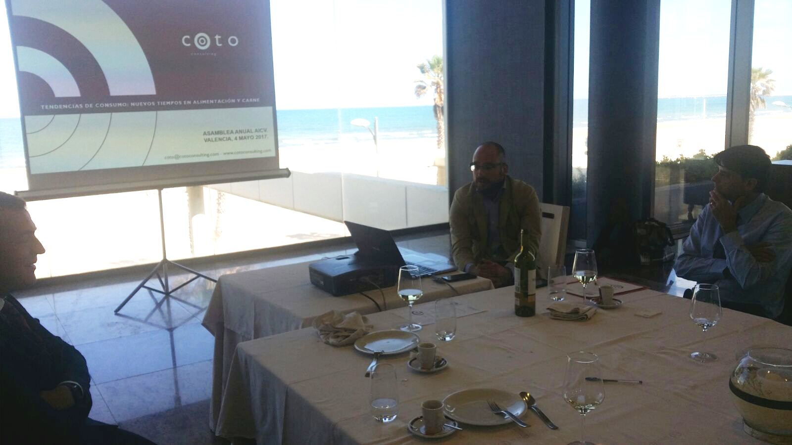 Nuestro gerente Pedro Reig ha impartido hoy la conferencia tendencias de consumo en la alimentación tradicional durante la Asamblea Anual de la Asociación de Industrias de la Carne de la Comunitat Valencia (AICCV).