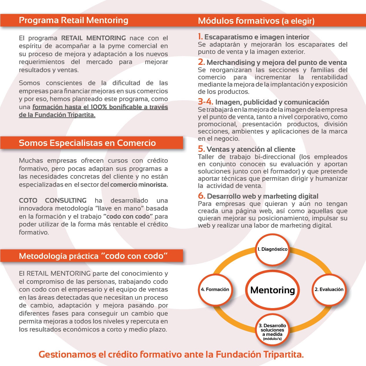 El programa RETAIL MENTORING de Coto Consulting nace con el espíritu de acompañar a la pyme comercial en su proceso de mejora y adaptación a los nuevos requerimientos del mercado para mejorar resultados y ventas.