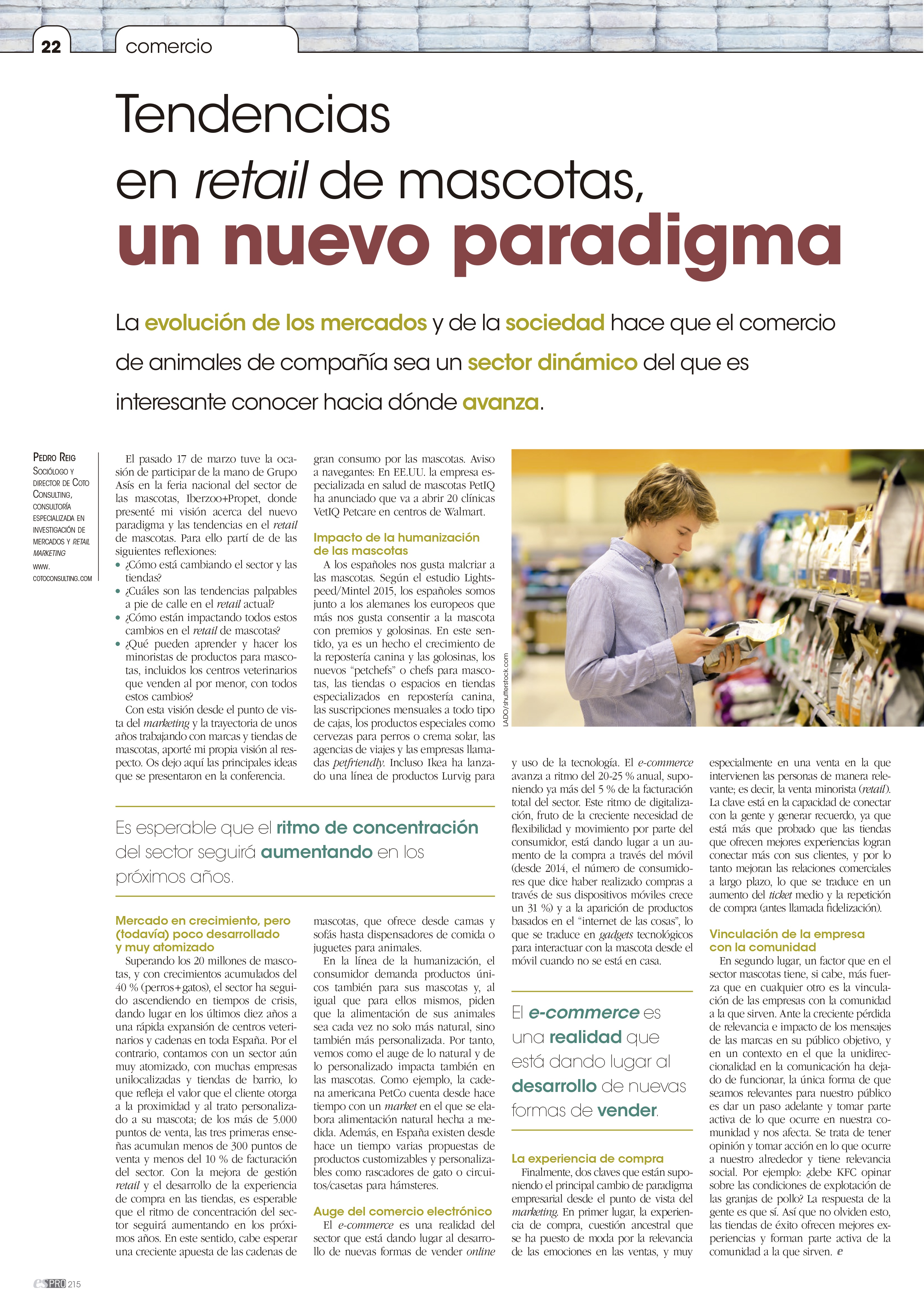 Artículo de nuestro gerente, Pedro Reig, que publicó en el número 215 de la Revista EspeciesPRO