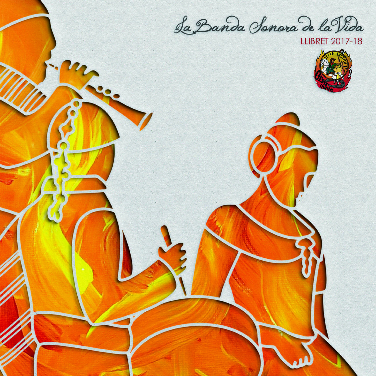 La portada del llibret, que lleva por título «La Banda Sonora de la Vida», representa el sentimiento de la música en la escena fallera. Los músicos tocan una canción en un momento muy emotivo para la fallera, puede ser una ofrenda, igual que la noche de la cremà. Para trasladar la esencia de la fiesta se han utilizado técnicas que simulan un acabado en cartón piedra recortado con fondo de fuego en óleo. Ver llibret «La Banda Sonora de la Vida»